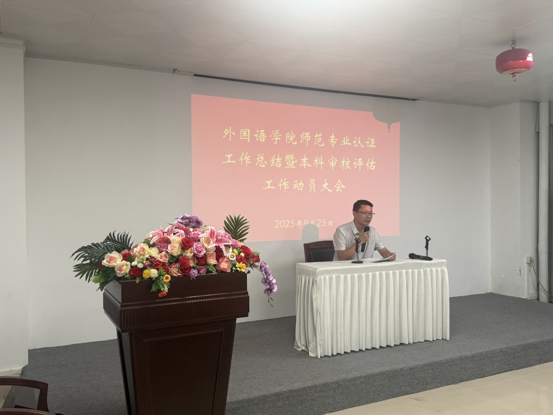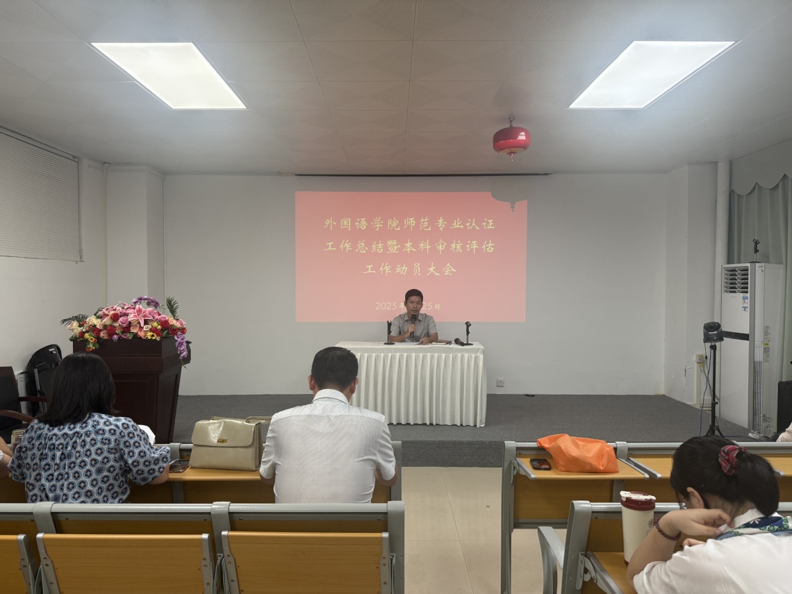 2025年9月25日下午三点,为全面总结师范专业认证工作经验,迎接本科审核评估工作,外国语乐鱼网页版在实验二楼案例研讨室召开师范专业认证工作总结会暨本科审核评估工作动员大会。乐鱼网页版全体教职工参加会议。本次会议由刘忠喜院长主持。会议分为四项议程。