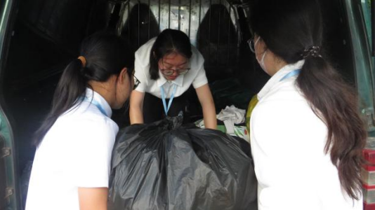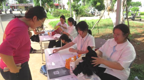 (图为捐赠衣物的同学进行现场登记)