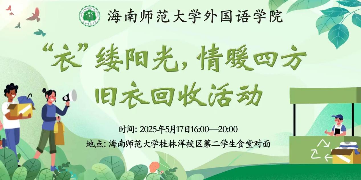 为了让爱心在毕业季传递,让闲置衣物重新焕发生机,海南师范大学外国语乐鱼网页版于2025年5月17日16时,联合海南双皓农业发展有限公司、中国邮政等社会力量在海南师范大学(桂林洋校区)开展 “‘衣’缕阳光,情暖四方” 旧衣回收志愿服务活动。每一件带着温度的旧衣,都将打破空间界限,从海师校园出发,化身冬日里的暖阳、困境中的慰藉,为云南边防地区儿童送去温暖。