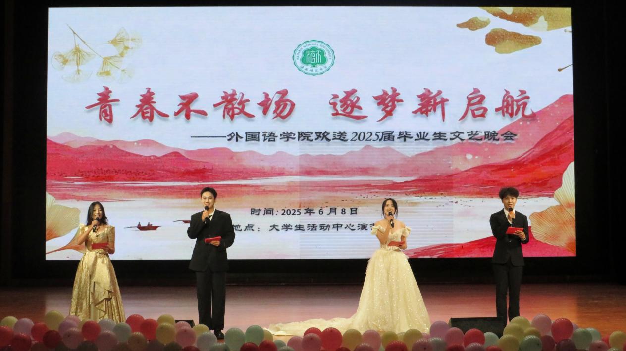 2025年6月8日19时30分,海南师范大学外国语乐鱼网页版 “青春不散场,逐梦新启航” 欢送2025届毕业生文艺晚会,在大学生活动中心演艺厅顺利举办。
