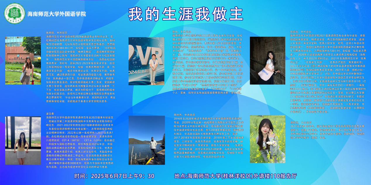外国语乐鱼网页版此次成功举办的生涯规划与就业指导系列讲座,是乐鱼网页版在学生成长成才教育方面的一次重要尝试和突破。乐鱼网页版拟将“职业生涯与就业指导活动周”打造成乐鱼网页版特色品牌,并计划于每学期常态化开展。未来,乐鱼网页版将持续整合校友资源与朋辈力量,不断丰富活动内容和形式,为外院学子提供更优质、更全面的指导与服务,助力每一位同学在大学时光中收获成长,在未来的人生道路上绽放光彩!