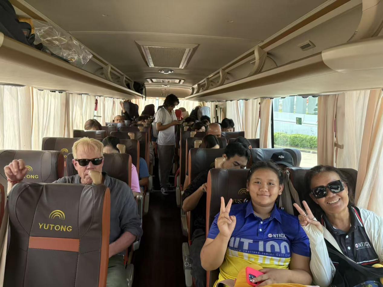 海南师范大学外语翻译志愿服务队的队员们笑容明亮,在机场举起双语接机牌等待球员们的到来。外籍球员推着行李走出机场,他们主动接过沉重的装备箱,用流利外语问候,并细致讲解后续行程安排,全程耐心又周到。这份主动服务的热忱、专业的语言能力,以及跨越国界的温暖,不仅让球员们快速卸下旅途疲惫,也展现了志愿精神的动人力量。