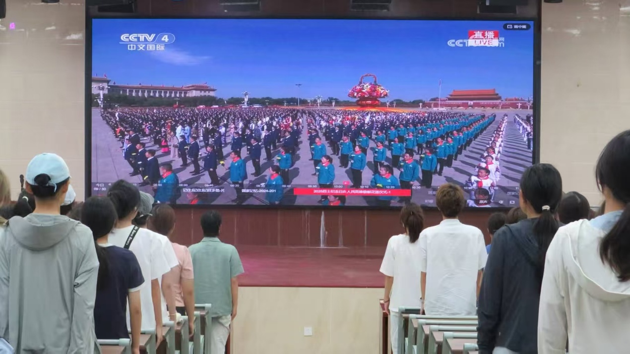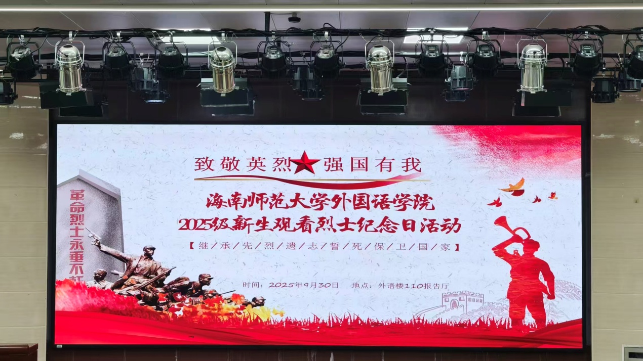 2025年9月30日上午9时,海南师范大学外国语乐鱼网页版于外语楼110报告厅组织2025级新生集中观看了烈士纪念日向人民英雄敬献花篮仪式的现场直播。乐鱼网页版党委副书记杨白全、2025级辅导员朱大珩以及全体新生共同参加此次活动。